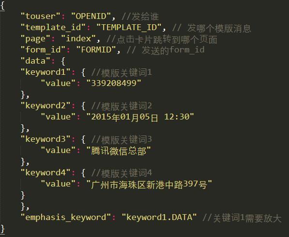 模版消息JSON大致格式